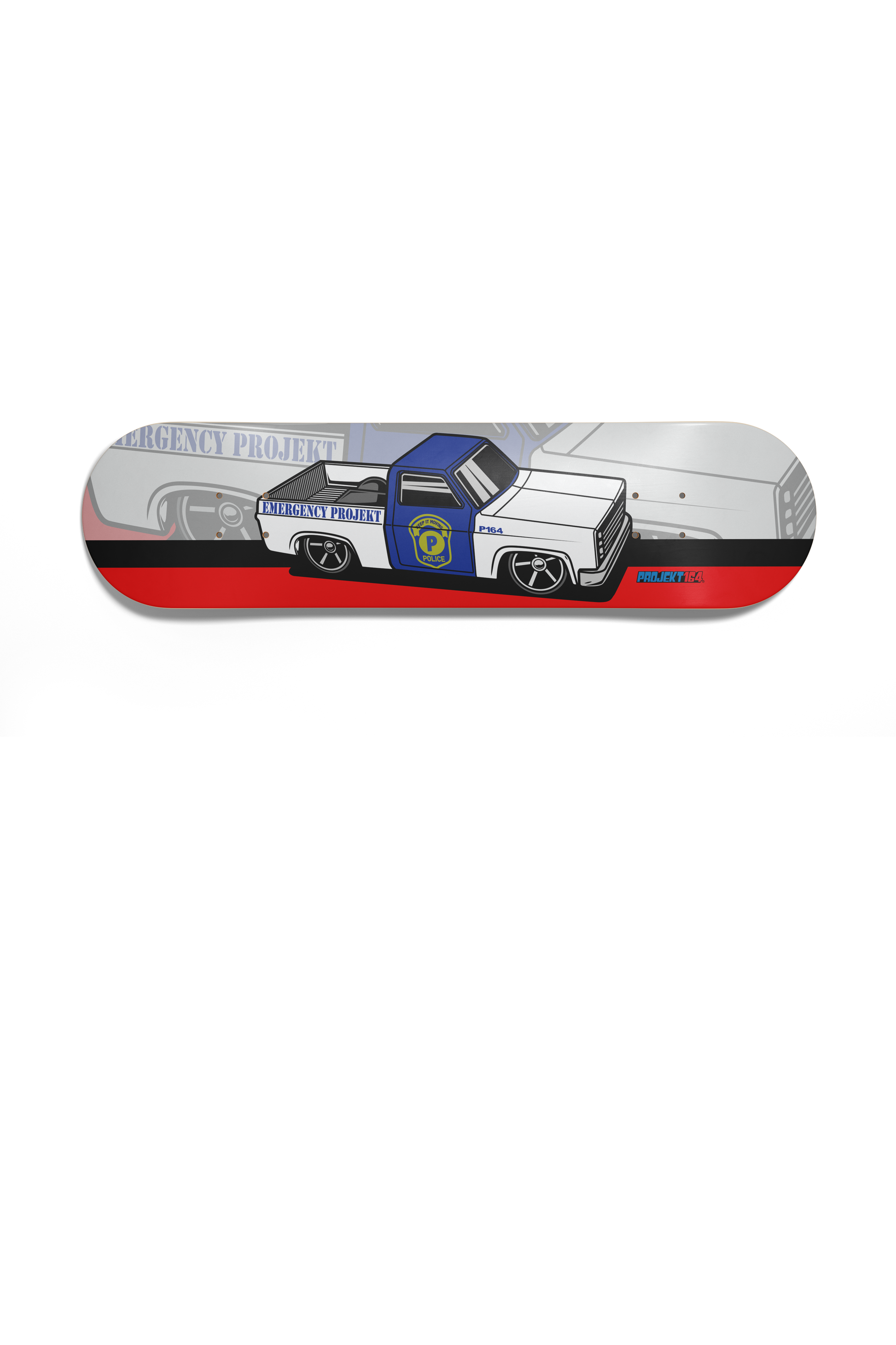 The Silvy deck is a perfect way add a cool factor to any garage or man cave. A must have for any diehard square body Chevy Silverado truck enthusiast. Art is a Projekt 164 original and printed on the bottom of each deck with assorted color veneered top.